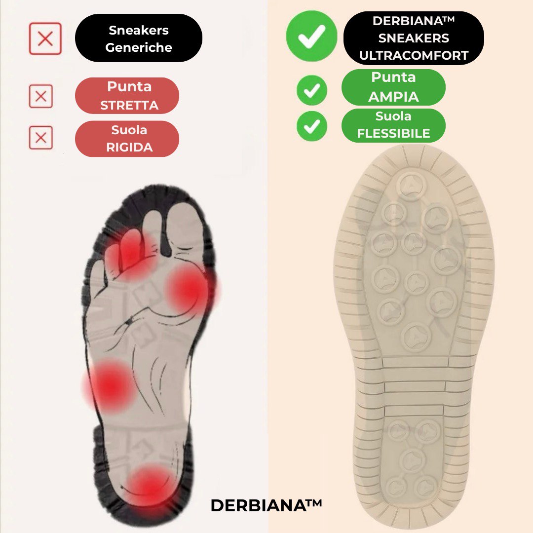 Le nostre Derbiana™ stabilizzano l'arco plantare, assorbono l'impatto sul tallone e distribuiscono il peso in modo uniforme.