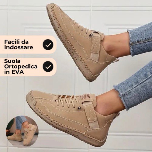 Sì. La suola ortopedica riduce la pressione sulla pianta, stabilizza il tallone e assorbe l’impatto a ogni passo. Molti clienti le tengono addosso 8–10 ore senza alcun fastidio.